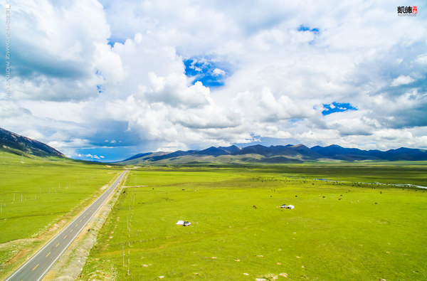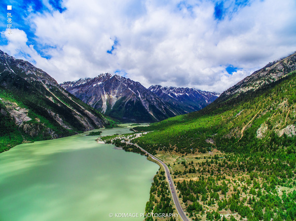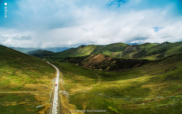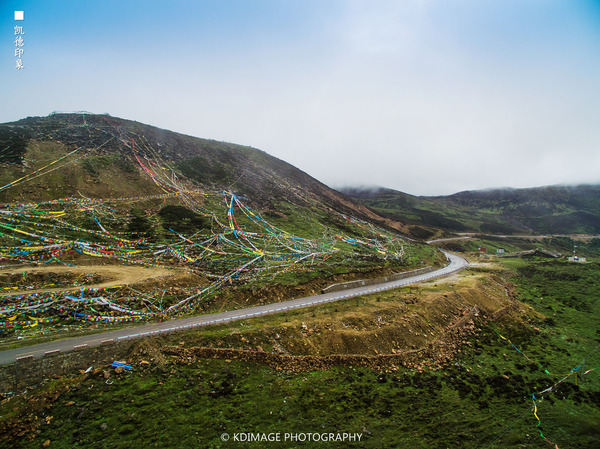 經(jīng)幡飄揚(yáng)在這個(gè) 五千多米的山口,周圍是連綿的山脈還有雪山。埡口的風(fēng)很大,氣溫低了很多,在這里連走路都會(huì)氣喘吁吁。我們在這個(gè)海拔放飛無人機(jī),第一次挑戰(zhàn)這么高的海拔,還是有點(diǎn)膽戰(zhàn)心驚的,幸好還是安全返航。廣闊的綠色草甸和延綿的318國道看著讓人心情舒暢。