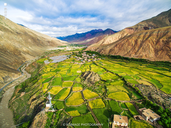 “八宿”藏語意為“勇士山腳下的村莊”。八宿屬三江流域高山峽谷地帶。我們在318國道上一路飛馳,來到八宿,已經(jīng)天黑,只是黃昏前看到的綠色山谷,和周邊光禿禿紅色的山體形成鮮明的對比,于是第二天一早決定來航拍一次,俯瞰這奇特的地貌。