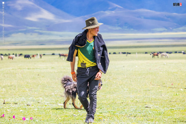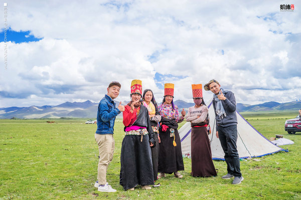 如此遼闊的場景,讓人不禁放聲歌唱。劇組的化妝師婷婷在唱了一曲《青藏高原》,把周邊放牧的藏民朋友們都吸引過來了。大家就像開嘉年華一樣,在草原上一起跳舞。其實(shí)蠻羨慕牧民們的生活,自由自在,奔放熱情。