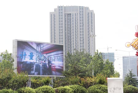 為擴(kuò)大宣傳效果,在活動現(xiàn)場外,位于富華路與福壽街交叉口的城市LED大屏幕上還播放了由省質(zhì)監(jiān)局拍攝的《計(jì)量在我們身邊》視頻宣傳片,引得不少市民駐足觀看。